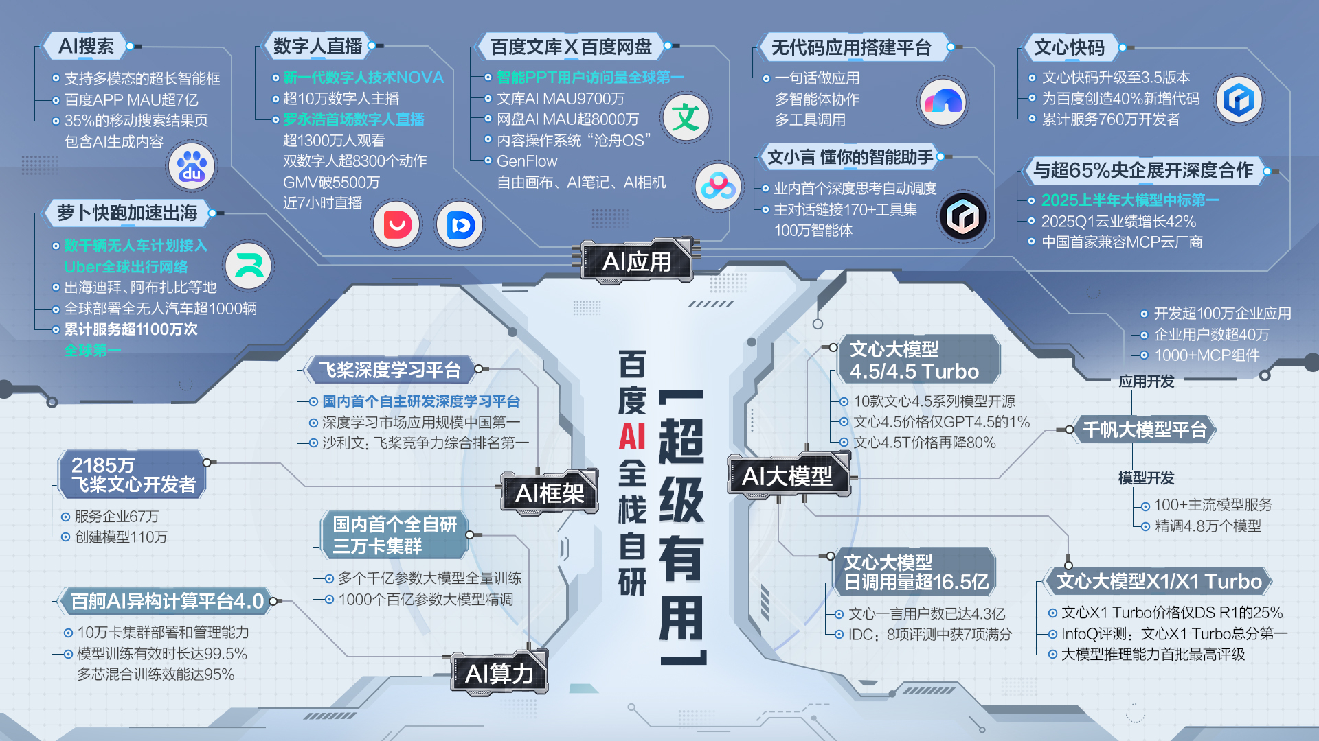 本年以来,支撑1000个客户同时做百亿参数的大模子精调。正在7月26日揭幕的世界人工智能大会(WAIC)上,百度还展出了秒哒、百度文库、百度网盘、百舸AI异构计较平台、百度智能云千帆大模子平台,百度三大AI焦点手艺和产物——萝卜快跑、飞桨深度进修平台、百度智算集群,入选中国人工智能财产立异展。兼容多芯片、适配支流大模子框架,百度慧播星还发布了新一代数字人手艺NOVA。百度正在此次WAIC大会上还展出多款焦点AI产物和手艺。该手艺曾支持罗永浩数字人曲播间创下5500万GMV,萝卜快跑加快全球结构,该集群依托百舸平台,本年以来,文心大模子4.5系列10款模子正式开源。7月15日,飞桨文心开辟者数量已达2185万,此外,打算将数千辆无人驾驶汽车接入Uber全球出行收集。本年4月,单卡吞吐机能比拟国内支流芯片方案能够超出跨越90%,可同时承载多个千亿参数大模子的全量锻炼,6月30日。